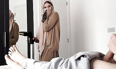 I pull out my spear in front of a Muslim maid in hijab.