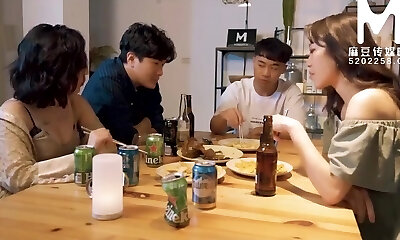 Red-hot Foursome Sex! Asian Couple Swap! No Condom, Creampie