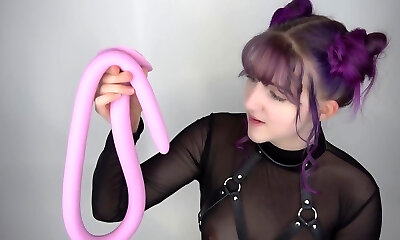 Pervy amateur sandy-haired fools around with huge tentacle in solo