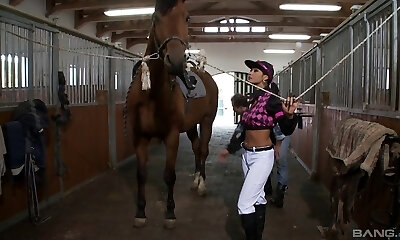 Anal rear end fuck with bombshell Cougar slut Jasmine Jae in a barn