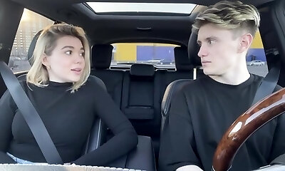 Frolic picked up teen enjoys swallowing meaty hard cock in the car