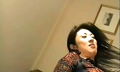 Sissy serf and his Jap domina in foot fetish act
