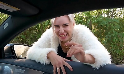 blonde schönheit coco de wit wird im auto gefickt