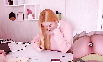 Helping my stepsister with homework but she's too distracted with vibro butt-plug in her butt!