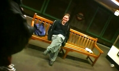 Displaying his cock to the strangers, the fellow then gets in luck with a blondie