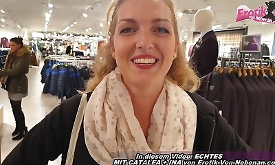 Eurobabe Meggie pussy stuffed in public and cum facialed