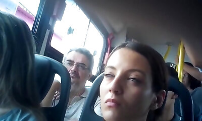 Exhibitionist seduces MILF to Blow & Masturbate his Dick in Bus until He Cums