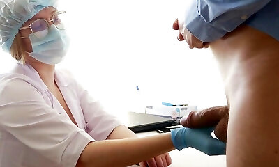 Sexy nurse does prostate massage and milks the jizz-shotgun in sexy uniform