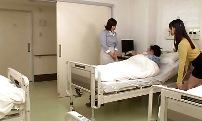 Wild nurse fucks a Jap babe with her strapon pecker