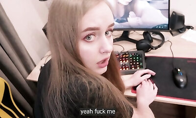 Slender stepsister helps me spunk while I watch porn - Russian Amateur